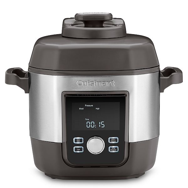 Electric stainless steel high pressure pressure cooker cuisinart picks up the pressure with this cuisinart picks up the pressure with this powerful new high pressure multicooker. Brown simmer or sauté food right in the pot before cooking and keep it warm when done. Unique shape with brushed stainless steel housing. Thoroughly clean the cooking pot in the dishwasher or with warm soapy water.